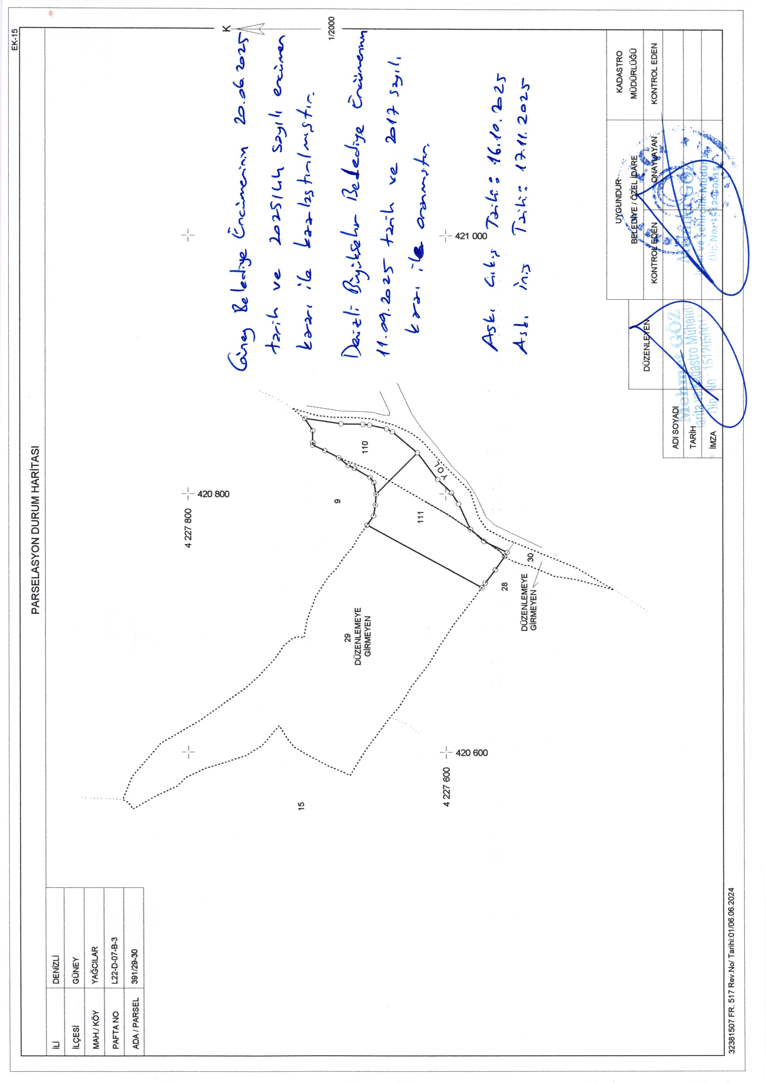 DENİZLİ İLİ, GÜNEY İLÇESİ, DOĞANLI MAHALLESİ, L22-